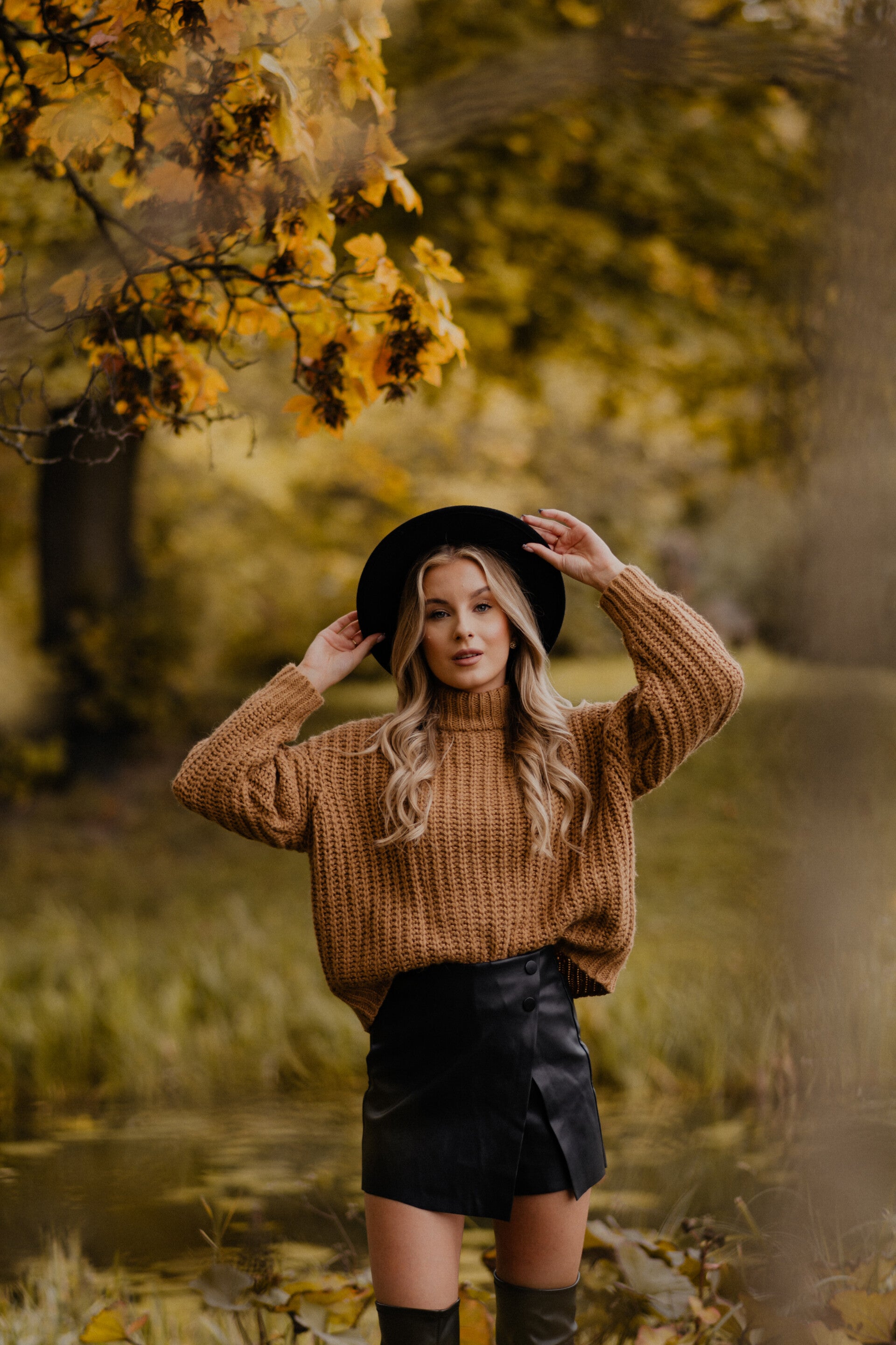 Idealny rodzaj sesji dla prawdziwej jesieniary. Kubek kawy, gruby sweter i złote kolory! W taką porę roku kadry same nam się malują. Moja ulubiona kolorystyka. Jesienne kapelusze? Nie musisz się martwić! Mam ich całą kolekcję... Koce, kosze i grube swetry również mam w swoim wyposażeniu.